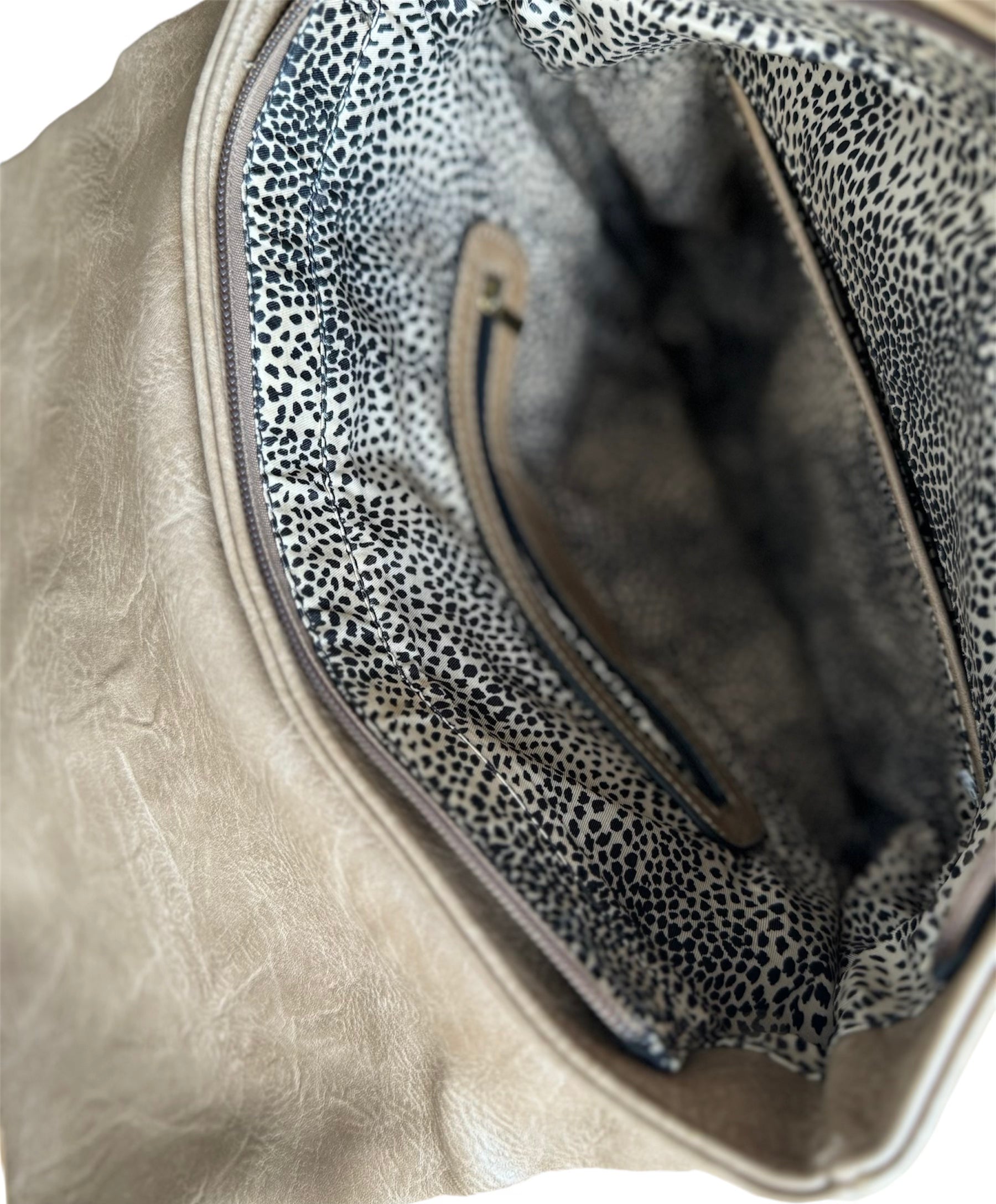 This fashionable backpack purse made out of 100% polyurethane leather is in great standing condition. Its earthy tan colour makes this purse a great item that will compliment your attire. Wear it on a casual day out or at a festival. Get your hands on it today and add it to your style!