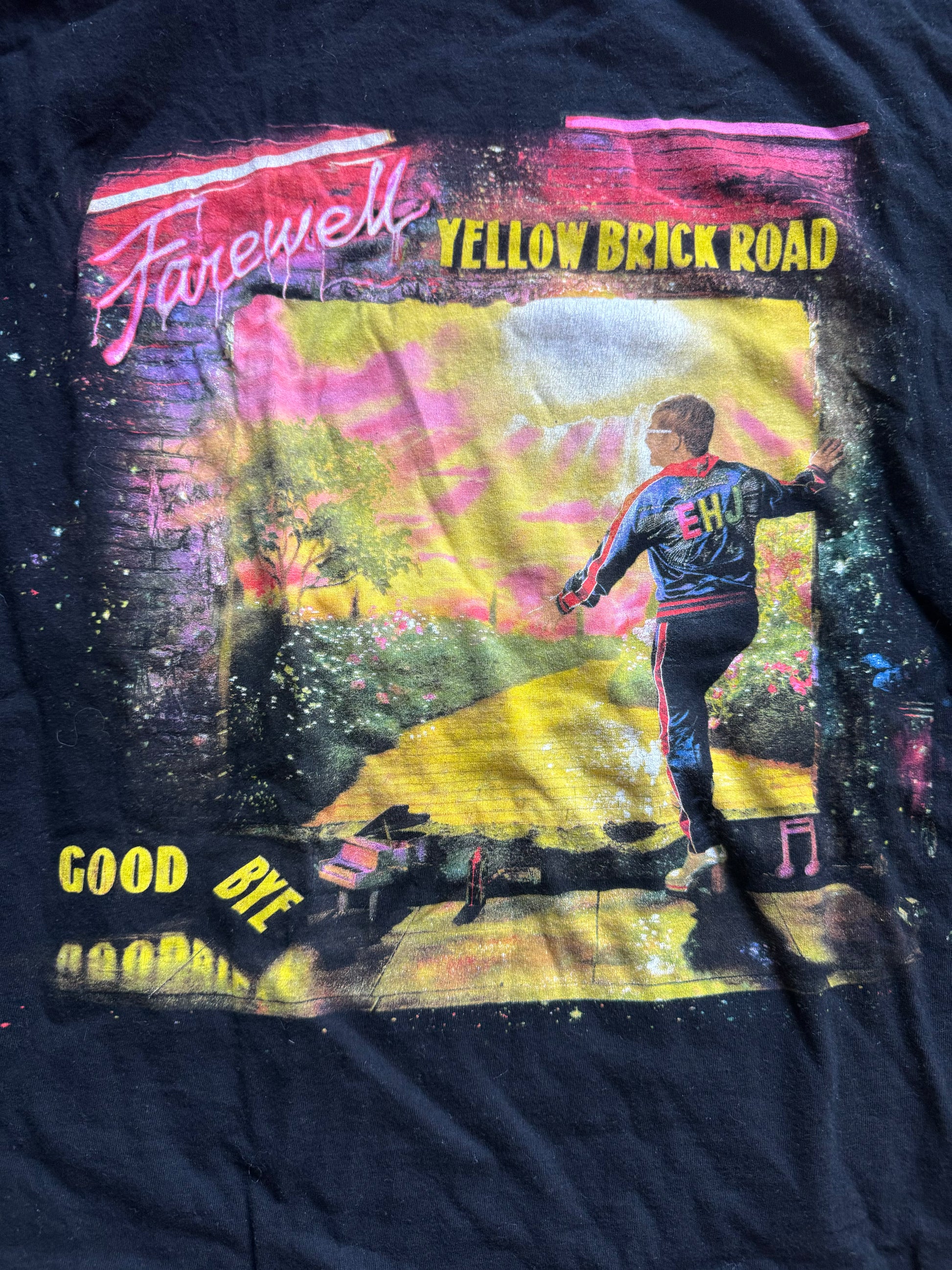 Celebrate the legendary Elton John's final tour with this exclusive farewell concert t-shirt. Featuring a bold graphic design commemorating his iconic Yellow Brick Road era, this black t-shirt captures the essence of one of music's most unforgettable farewell tours.